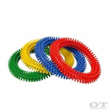 The Aku Ring is a pliable, textured quoit (ring) that is gentle to touch, but excellent to use in massage, reflexology, hand therapy and relaxation exercises. They also make for a great addition to your aquatic toys as they sink, ready to be found at the bottom of the pool. The soft spikes of the Aku Rings can give the user a pleasant sensory experience while engaging in therapeutic activities.