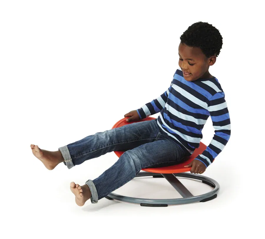 The Gonge Balance Disc is an engaging spinning seat designed to promote balance, coordination, and muscle development in young children. Constructed from solid, moulded plastic, the seat is securely mounted on a steel disc with a high-quality rotation joint featuring two sets of ball bearings for smooth and controlled spinning. The base is made of durable metal with solid rubber feet, ensuring stability and safety during use. The seat is slightly angled, allowing children to propel themselves by shifting their body’s centre of gravity or by pushing off with their feet. The thick edge of the seat provides a secure grip, helping children to hold on while spinning. This interactive resource is ideal for strengthening muscles, stimulating the vestibular system, and improving overall coordination, making it an excellent addition to early learning environments.