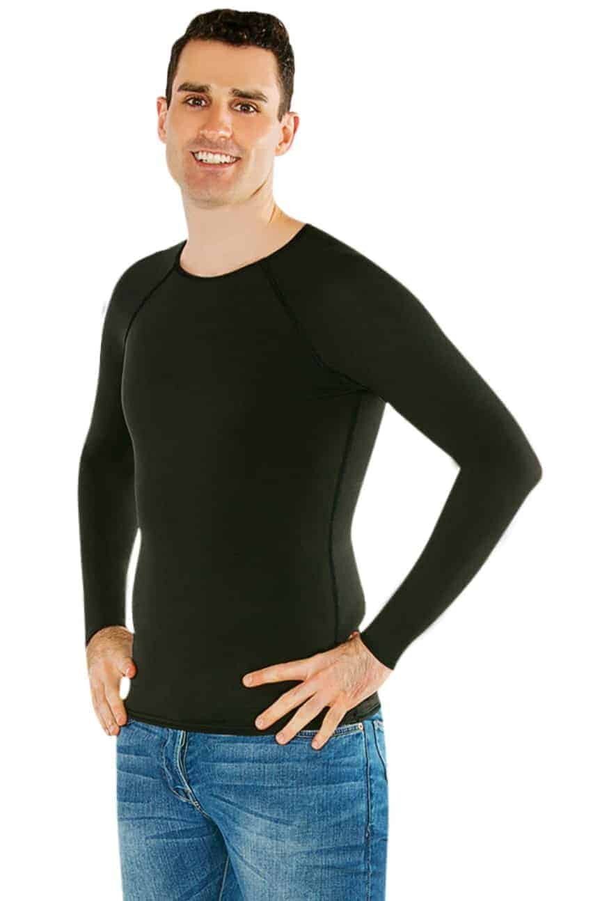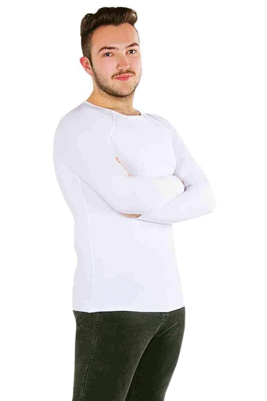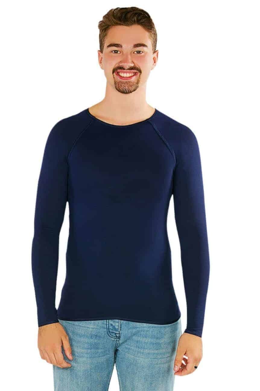 A CalmCare sensory therapy long sleeve shirt men is a compression shirt manufactured extra-long to provide sensory input to all of the torso. Calm Care shirts can be worn as clothing or undergarments and help adults regulate their bodies and filter sensory information.