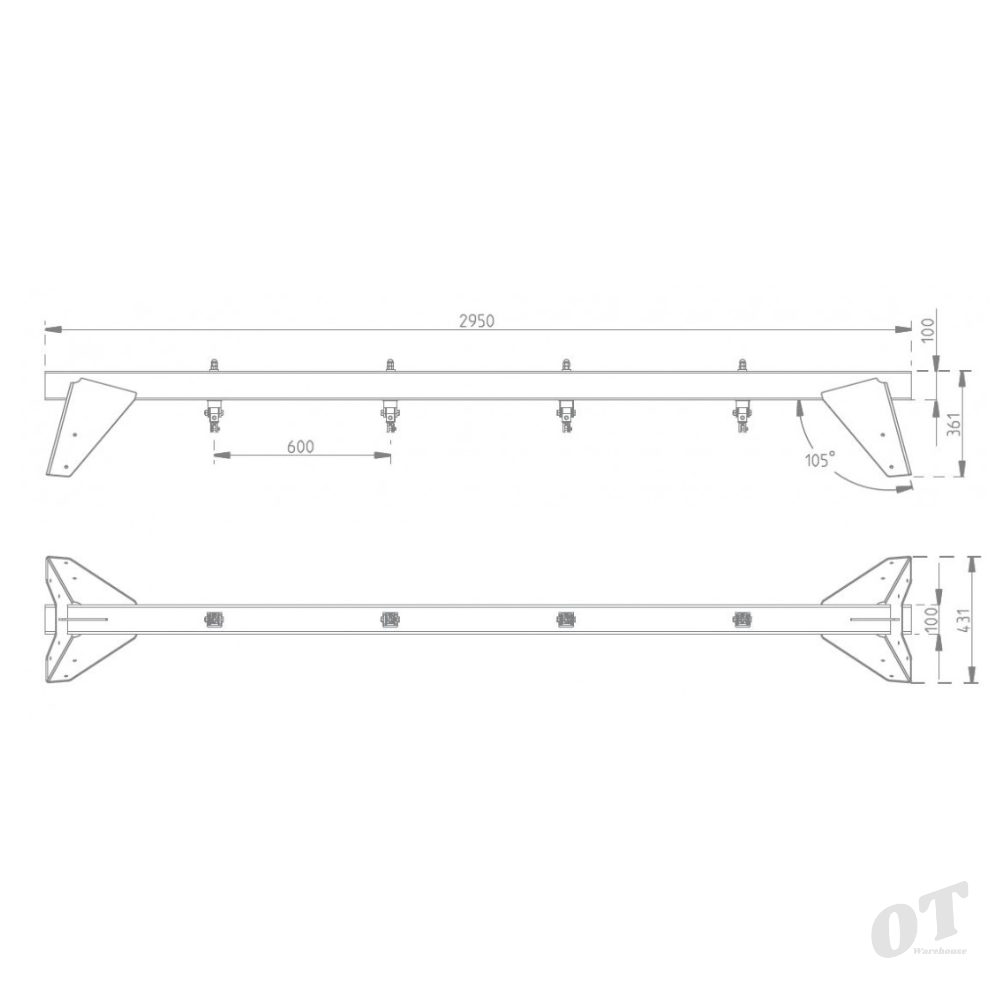 - Steel Top Beam Dimensions: Length: 2.95 m x Height: 0.361 m x Depth: 0.431 m