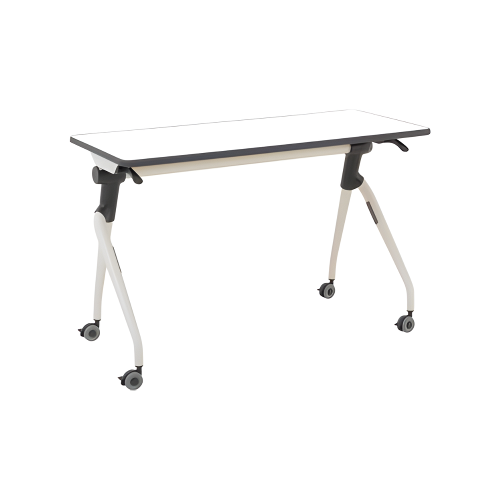 A versatile folding table with a whiteboard table top. This table features castors for easy mobility and a timber look laminate top with a performance edge for extra durability. This folding table is easy to use, simply lever the mechanisms on both sides of the table to fold up. This table can then be rolled away for storage or use in another classroom or learning space. Folding tables are great for general classrooms, flexible spaces, STEM rooms and also perfect for after school hours care or where the furniture needs to be removed at the end of the day. The table also features a white powder coated metal frame and measures 120cm wide x 60cm deep x 75cm high.