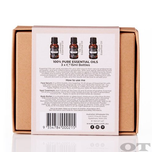 'Skin Repair' is a 3-pack bottle set consisting of 100% Pure Essential Oils – all packaged in a stylish and environmentally friendly gift box!