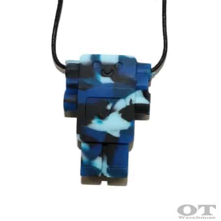Safe and strong for your child's calming chews, this pendant is made from BPA-free, 100% non-toxic food-grade silicone and is held on a strong black necklace with our custom clasp that is specially designed to separate easily when gently tugged or snagged. Cleaning this little robot is super-simple, keeping him safe and ready for when your child needs him.