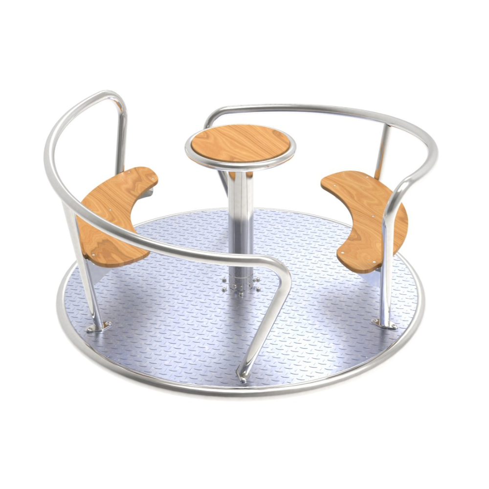 Carousel with Seats – Playground Spin VIENTO. Commercial-Grade Merry-Go-Round for Playgrounds. Premium Stainless Steel + Natural Timber Design