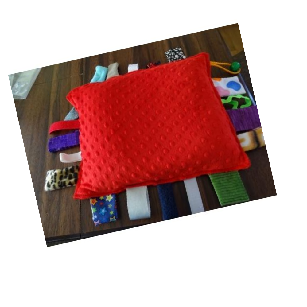 The weighted minky cushion weighs 2.5kgs and has 20 tags that are textured to give users a sensory experience.