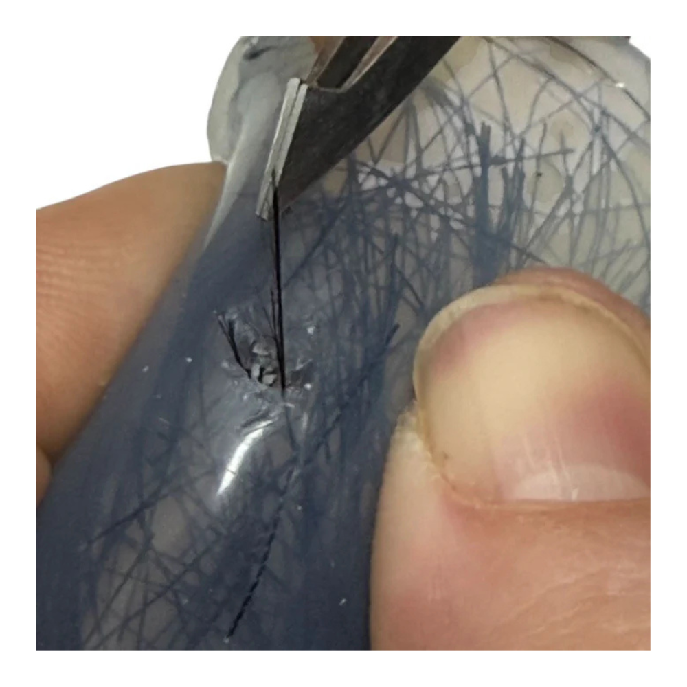 Designed to mimic pulling out hair. The two materials give different levels of 'tug' or resistance when extracted. The polyester thread can fray and break) in the process, adding to the 'surgical like' procedure of getting it ALL out. The nylon fishing line feels like pulling an ingrown hair out. rubbing along the sides you can often feel the ends of the nylon, quite like hairs on a chin lol.