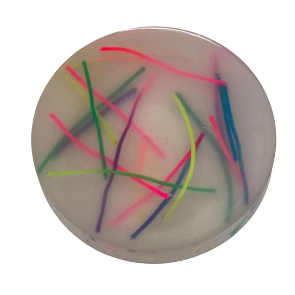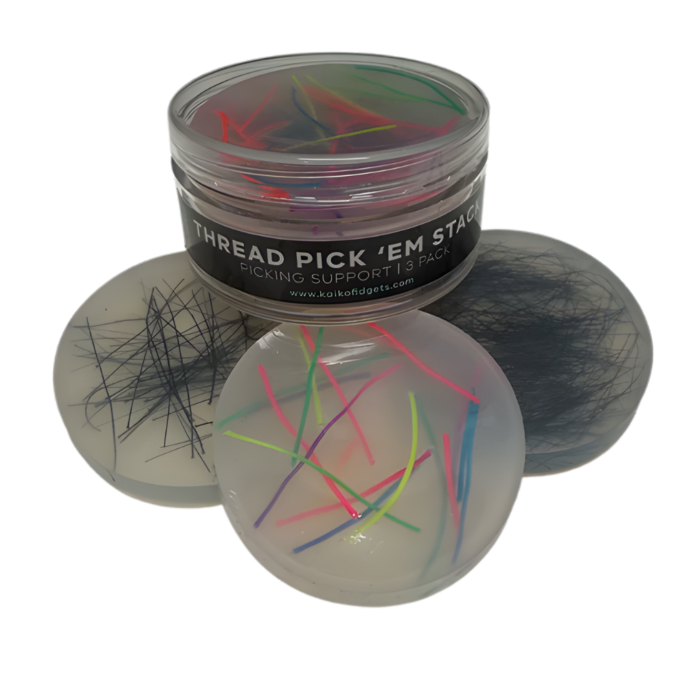 Each of the silicone discs contain items with purpose in mind. In addition to being pure JOY for many, there is a more serious side to this genuine sensory seeking behaviour. Picking skin & hair pulling can be a form of stimming sometimes referred to as body-focused repetitive behaviour & super common, especially for those, like me, that are neurodivergent. It can be a sensory self-regulation behaviour, stim or part of repetitive ‘loop’. It can lead to compromised skin, bald patches, risk of infection, scars, shame and distress. It can also be a challenge to stop, even when harmful. Which is why we have a focus on having a range of tools to assist in supporting this sensory need.