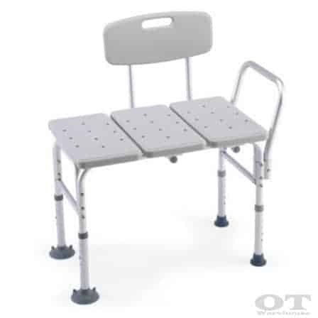 The transfer bench provides easy and safe access and a stable seating area for bathing and showering. The aluminium frame is height adjustable.